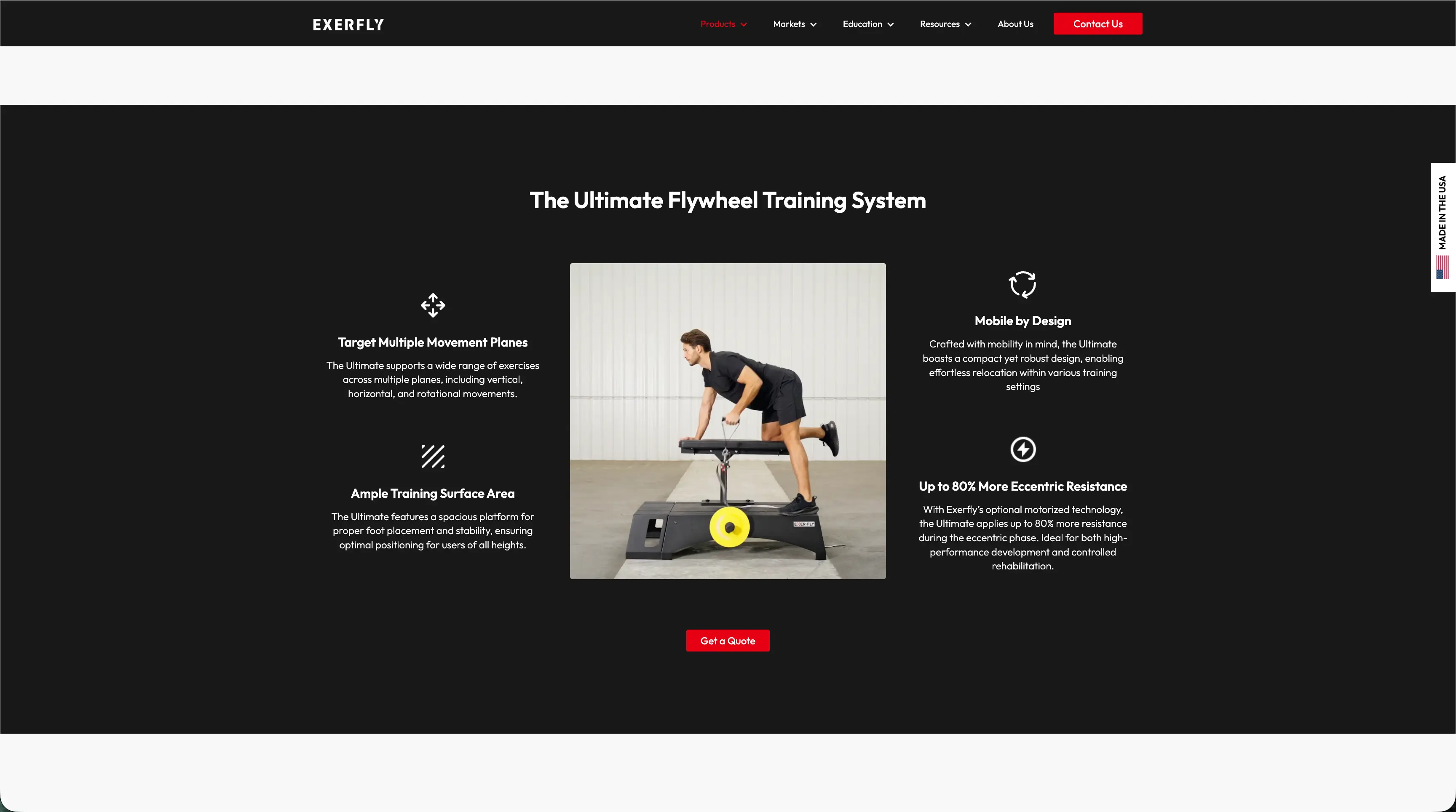 Exerfly is a US-based manufacturer of flywheel resistance training equipment used by elite sports organisations including UFC, NBA, NFL, and Premier League clubs. I worked on the Exerfly fitness platform — a web application providing athletes and coaches with structured training content and resources.